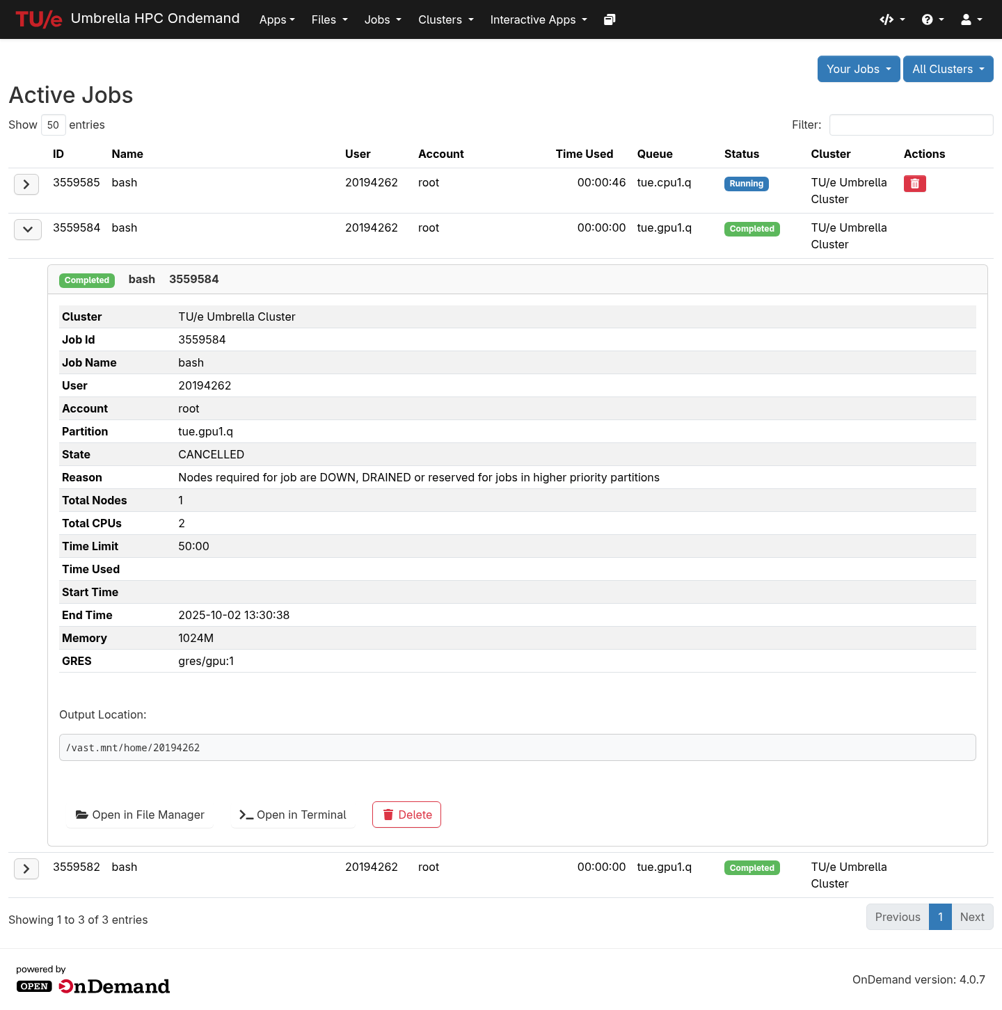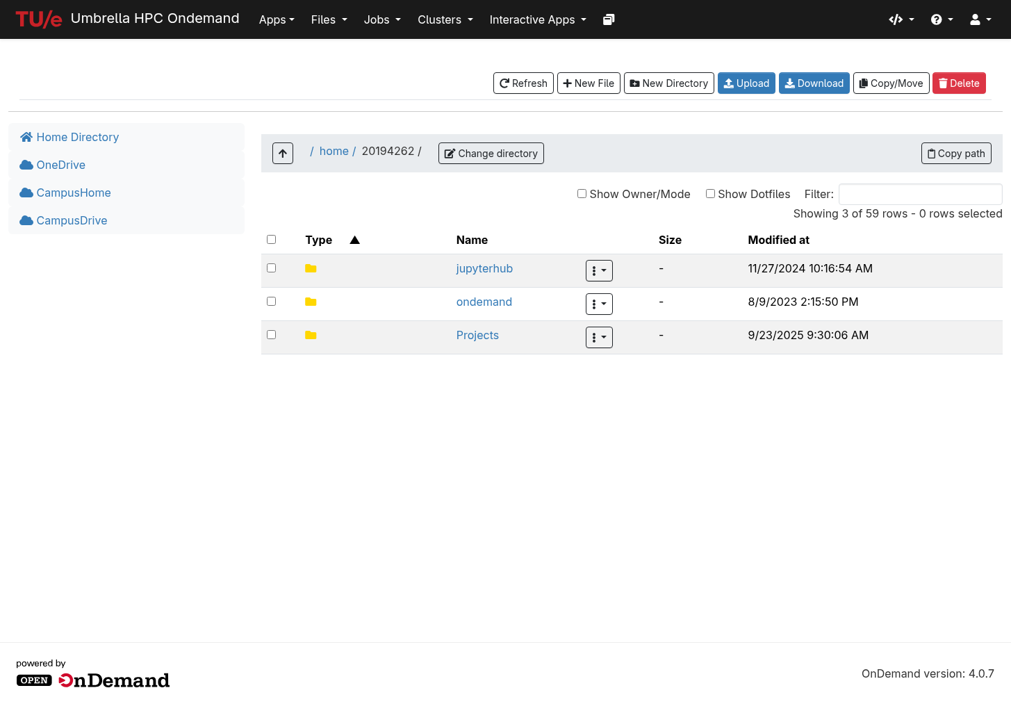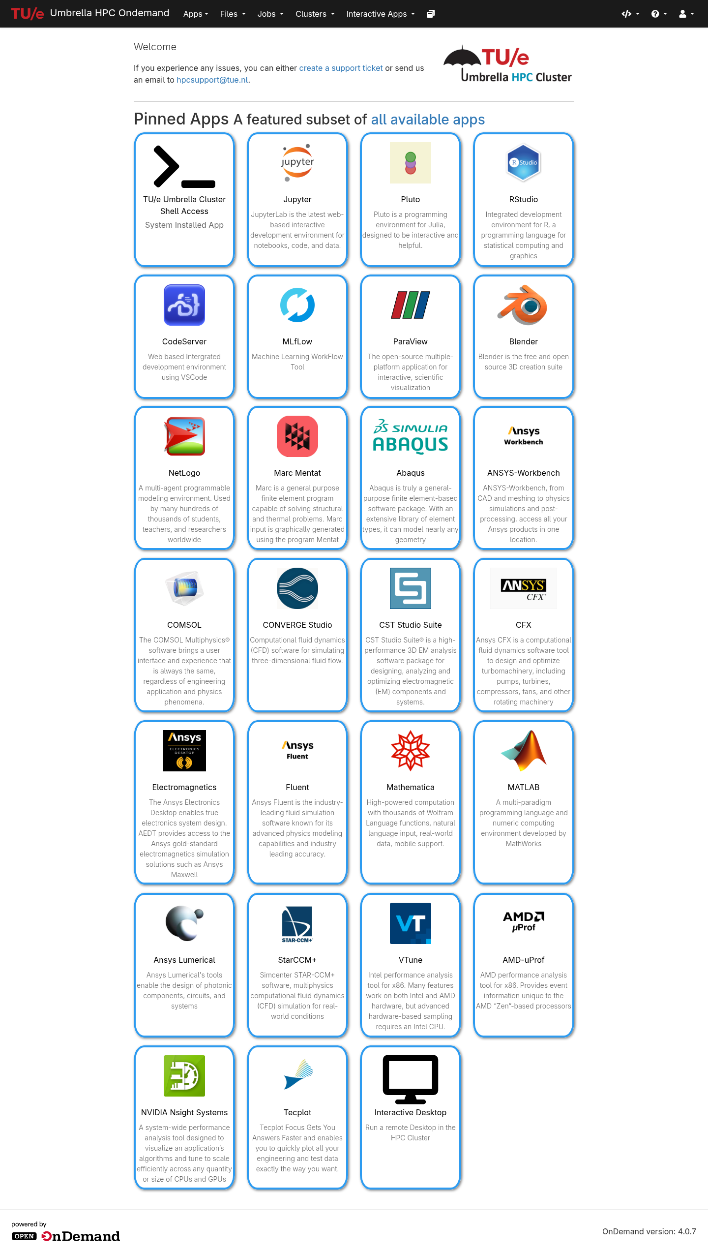 The TU/e Umbrella HPC cluster uses Open OnDemand for remote web access.